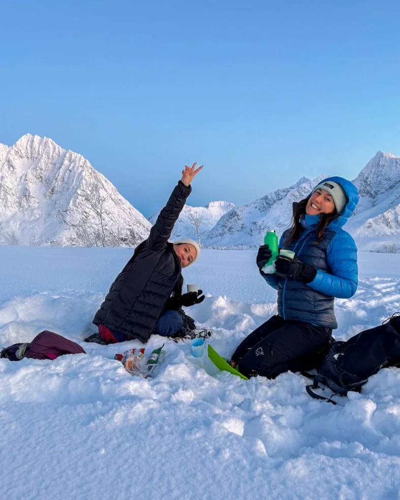 Possible activities include: snow games, sled races, building a snow camp with a fire, cooking over an open fire, fjord swimming for the brave, warming up in a traditional lavvo tent, dancing disco under the Northern Lights if they appear, exploring breathtaking landscapes, and slowing down to fully absorb the magic of the Arctic. And many other things!